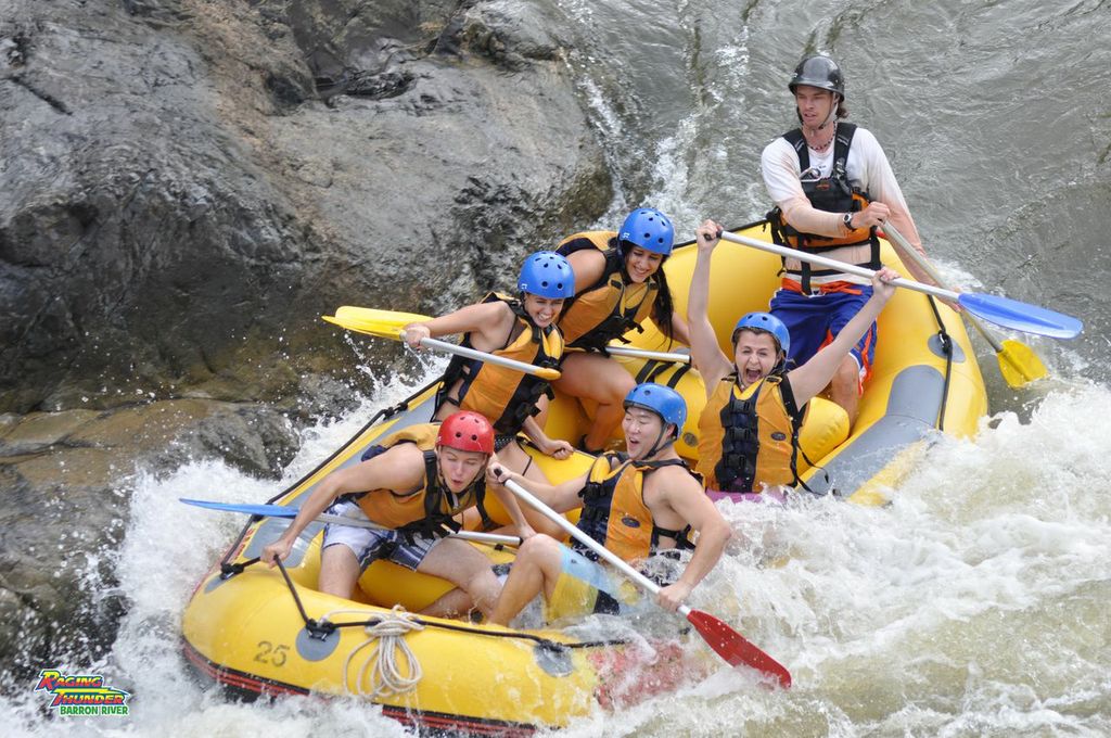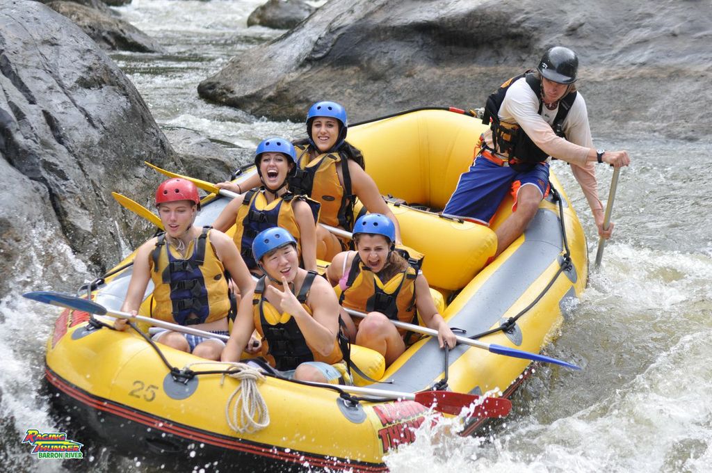 When we arrived, we got put into our rafting groups, ran through some safety protocols and were ready to go. My group consisted of myself, 4 USA exchange students currently studying in Sydney as well as Tim. We hopped into the raft and started our way down the Barron River. They say a picture speaks a thousand words, so in that case I will let you gage my rafting experience via these pictures…