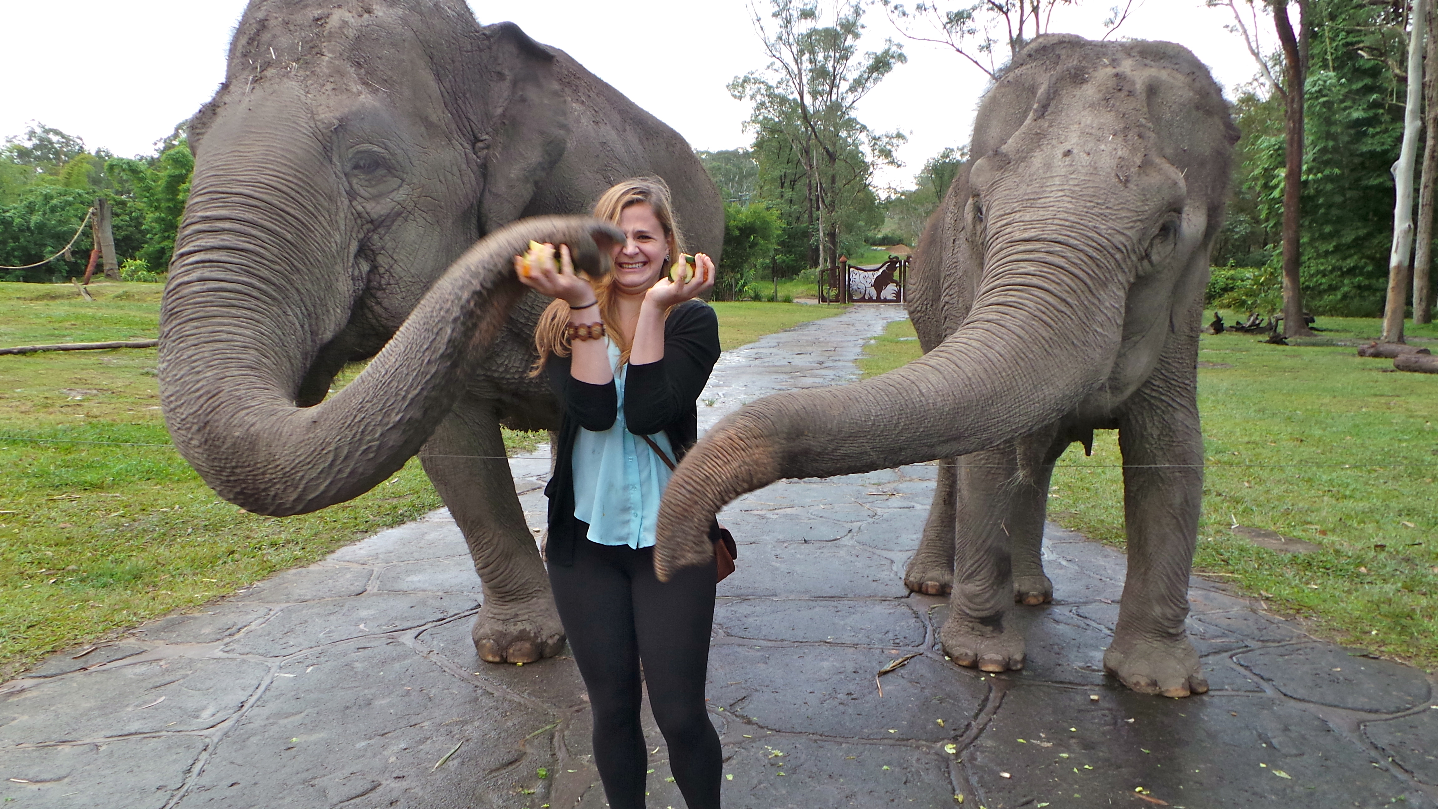 AWESOME ALERT! – Okay, so the next experience available at the zoo has got to have made it to the top of the “awesome cool things” I’ve done in my life list. I haven’t actually written that list down yet, but if I ever do, it’s going to be on there… probably fitting somewhere in between the 1st and 10th spot. I’ve done a lot of awesome cool things before, so ranking that high is quite a statement. The Australia Zoo offers an encounter that brings animal encounters to a whole new level – the biggest and best encounter ever… the elephant feeding encounter.