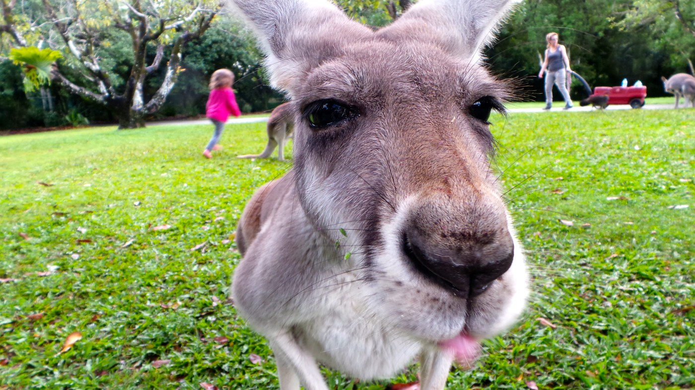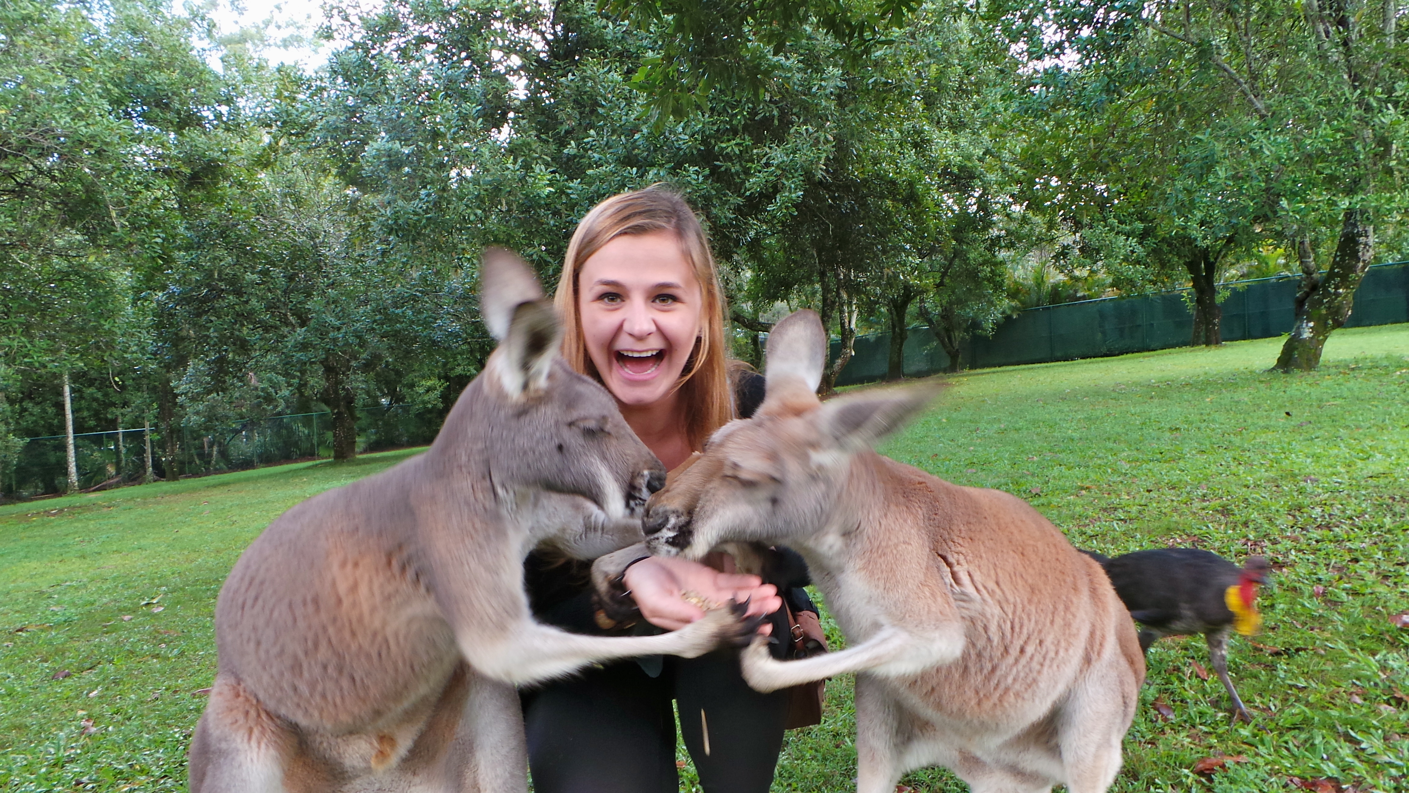 I have a hard time writing about the next section of the zoo we went to without smiling and laughing uncontrollably. Many of the encounters you have at the Australia Zoo are by purchase only; however if you want an encounter that will top a lot of things in this universe… visit the Australia Zoo kangaroo enclosure. Maybe it is something in the water in Australia, or the food these guys eat, but these kangaroos are hilarious. I think the pictures speak for themselves that these guys enjoyed my company as much as I enjoyed theirs.