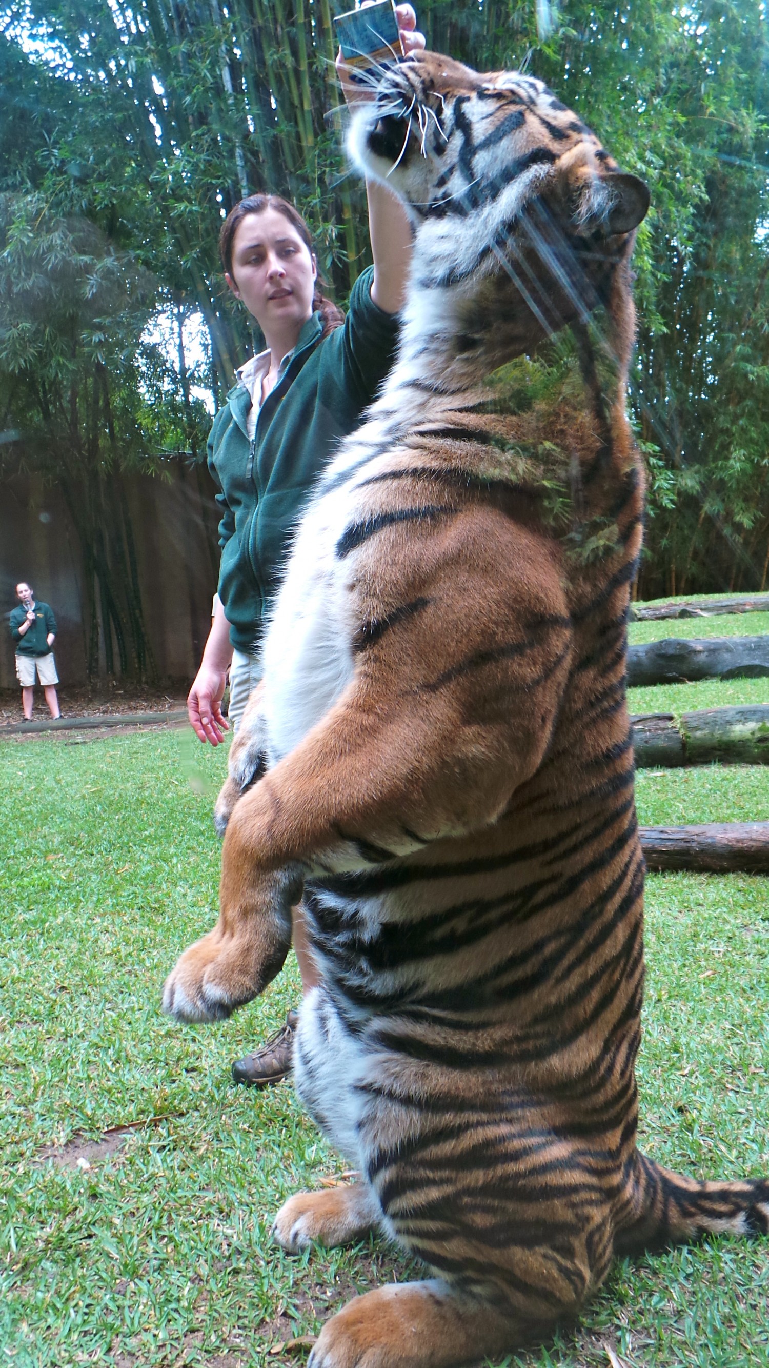 Continuing through the zoo we met up with the tigers at the Tiger Temple. Bengal and Sumatra tigers were on display and were about to go through with some daily check-up routines. It was so neat that behind the observation windows we were able to see a tiger undergo a few procedures (teeth cleaning, etc) with the use of dripping milk. Instead of sedating them to keep them under control, the milk soothes them and allows for the zookeepers to get up and close to perform their check-ups. It was really neat that the Australia Zoo has routines like this, and the general public is able to see them live. By the end of the presentation I had fallen in love with one of the tigers and didn’t want to say bye.