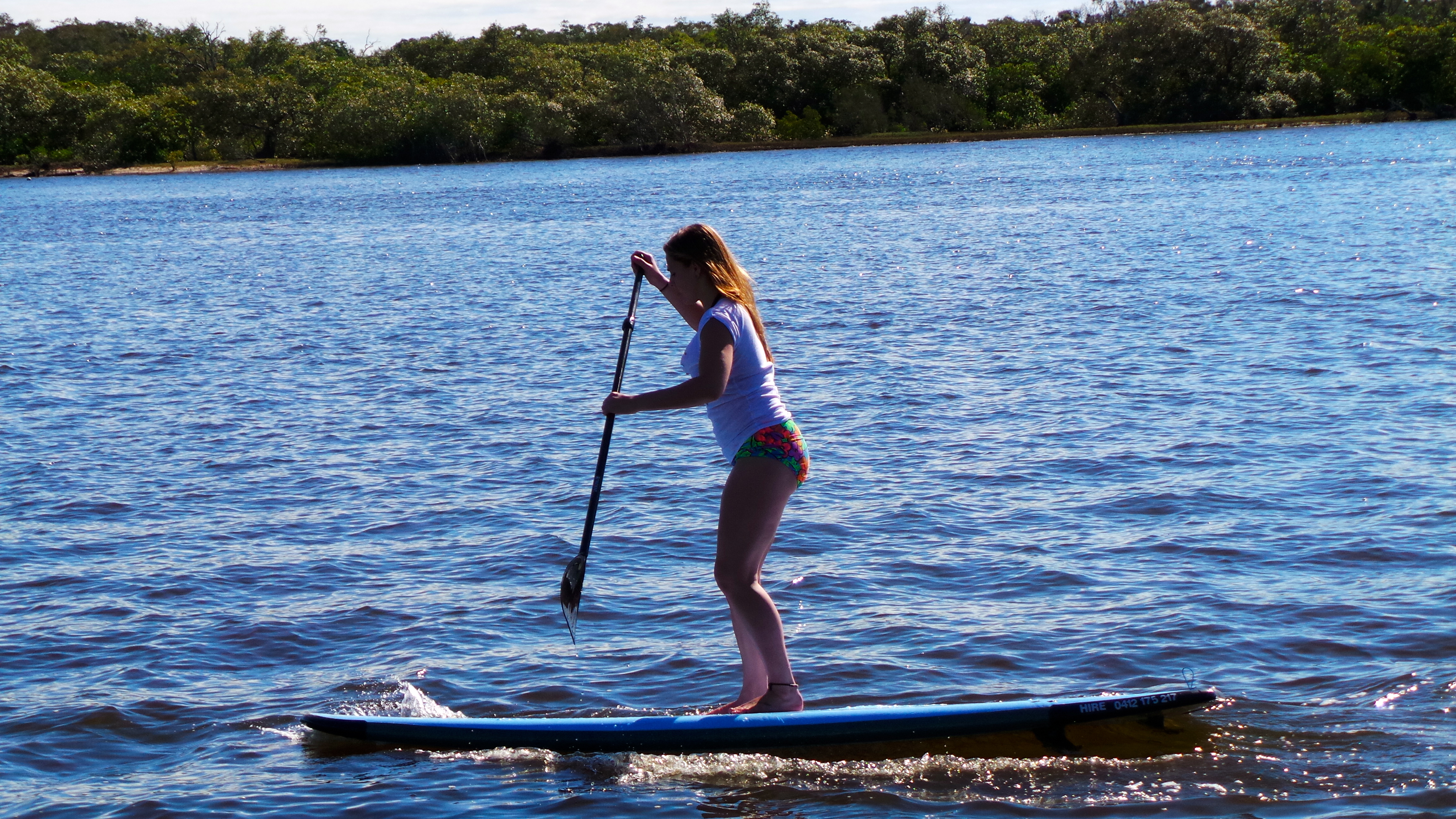 With Australia’s first Stand Up Paddle Surf Shop being in Noosa, I was amped to have a go at this myself. It was a beautiful winter morning in Noosa, reaching a high of around 25 degrees – perfect weather for stand up paddle surfing. I made my way down to Jetty 17 on Gympie Terrace to meet up with my paddleboard instructor Hayden. As soon as I arrived I was greeted with a smiling face and we went straight into my lesson. We grabbed 2 boards and made our way out into the water. The water was as calm as glass, which made my first time trying this activity a lot easier.