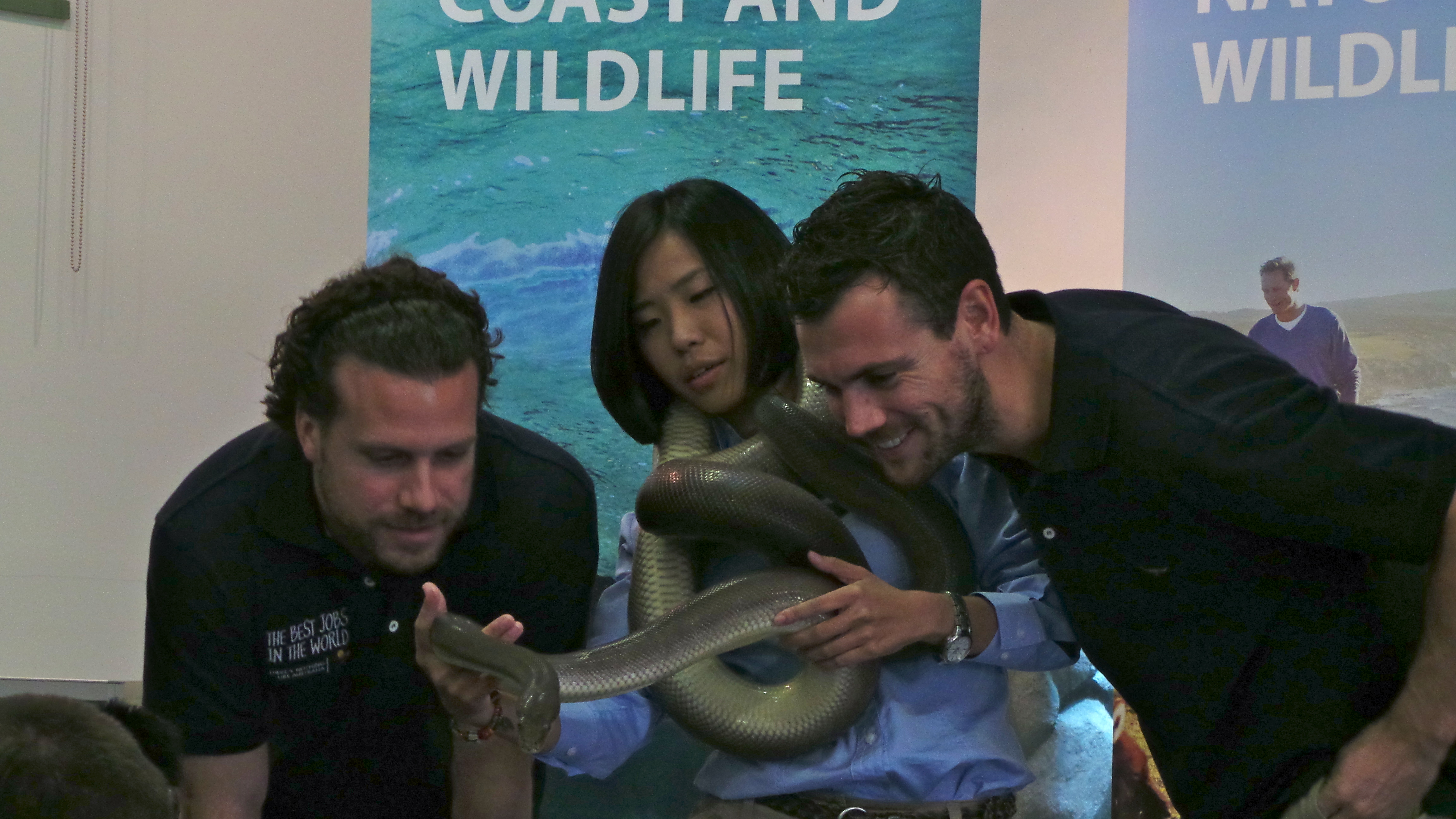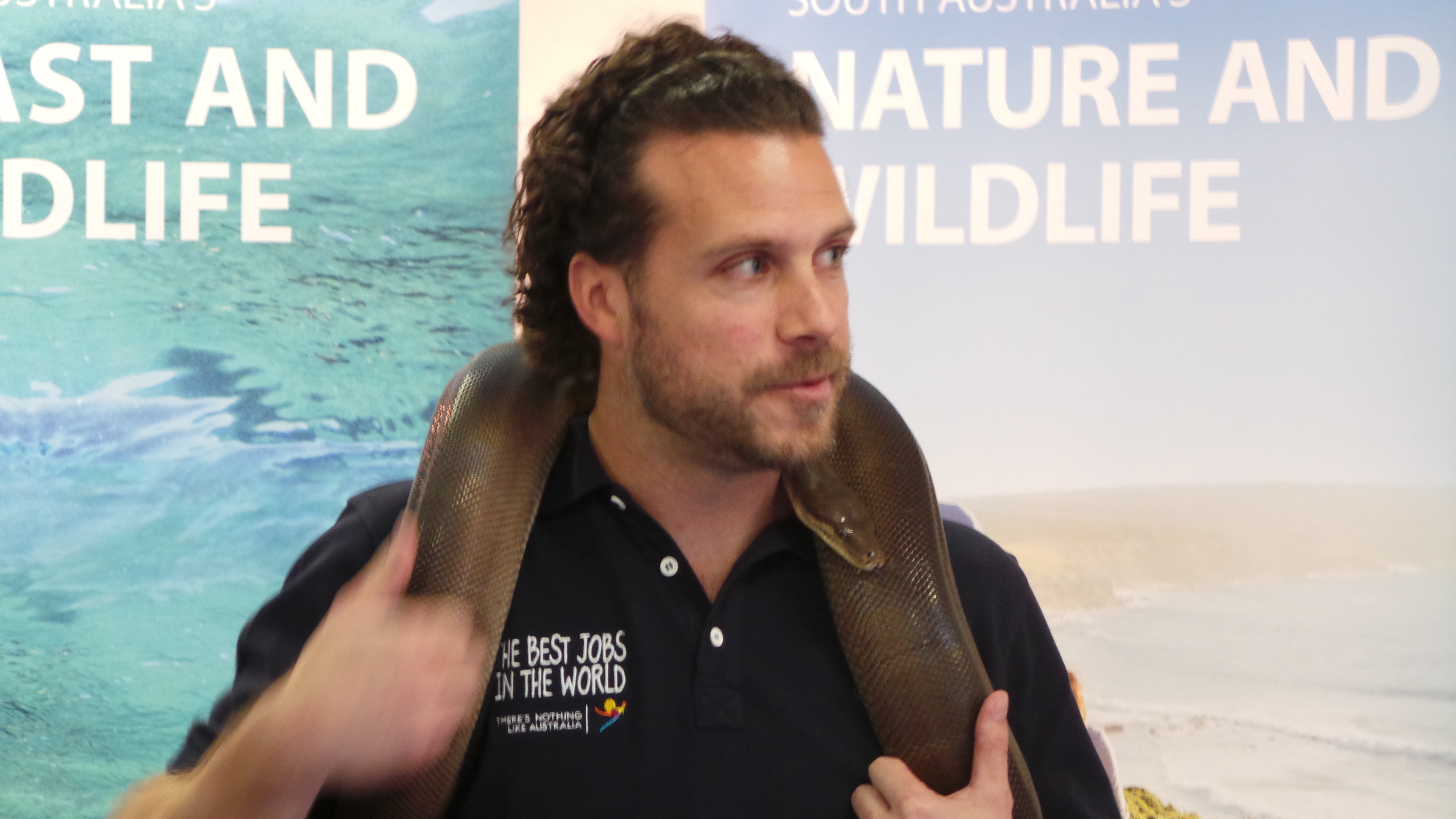 The first challenge for the finalists was to test out their interview and media skills while on camera. Easy task you may think… however there was a twist. The twist fit in perfectly with the wildlife caretaker job the three finalists have been applying for. They would be handling a python and placing it behind their neck for the duration of the interview. In addition to the manipulation of the snake from the resting position to the neck, they were further required to make it feel at ease while they discuss themselves as a finalist in the competition. It really gave the judging panel a chance to see how the finalists react in a slightly unusual situation, and how they handle “wildlife” while on film. The lucky winner of the wildlife caretaker job will be participating in various experiences similar to this during their contract; so nailing down the nerves and hammering out a stellar interview is essential.