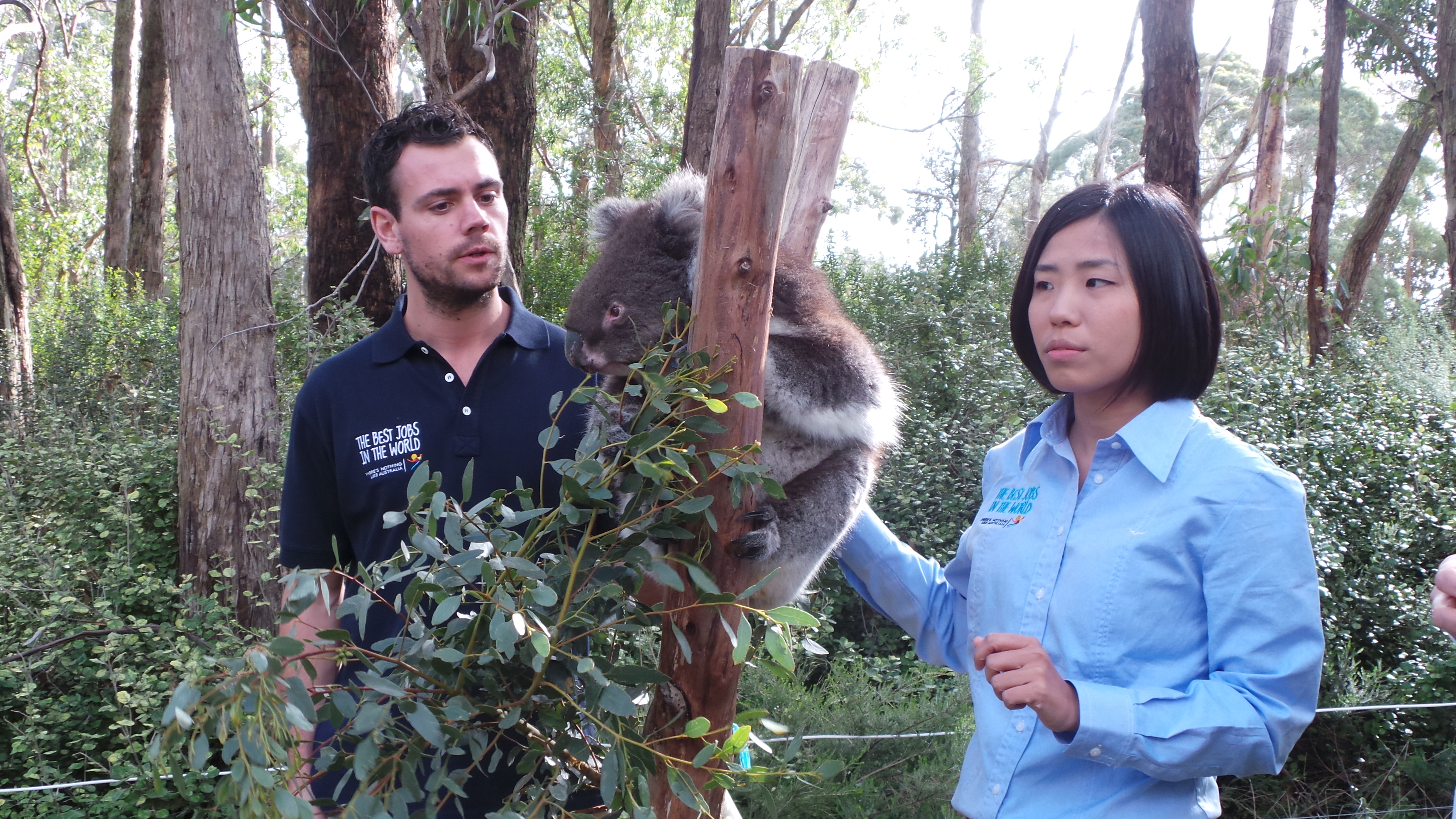 Following the python encounter, the finalists found themselves participating in an unexpected but exciting additional encounter. Hank the koala was “hanging” out outside the room where the python encounter took place, and the finalists found themselves an opportunity not to pass up. CC, Greg and Nick took up turns interacting with Hank – patting his lower back and not getting to close to his face. Hank was in the middle of eating some eucalyptus leaves and he wouldn’t have wanted to be disturbed. It was a nice finish to the morning for the finalists after the python encounter and interviews.